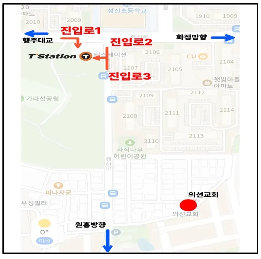 (*티맵이나 카카오네비 기준입니다, 네이버지도는 X) - 가람교에서 진입 후 30m 직진하신 다음 건설사 현수막 앞에서 좌측으로 들어오시기 바랍니다.